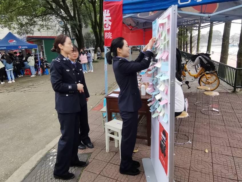 活动主要分为游戏和采访两个部分。游戏环节中,参与者通过“一分钟抄写”,将抽签条上的法律法规、相关案例正确抄写且达40字,即可将便签贴在宣传板上合影留念并获得参与奖品一份。活动使参与者在体验游戏乐趣的同时收获相关知识,倍受广大师生好评,不少受访者纷纷表示收获颇多,希望能为校园平安建设添砖加瓦。期间,省委省政府戒毒中心的公安人员也打卡参与“一分钟抄写”,并对博彩论坛