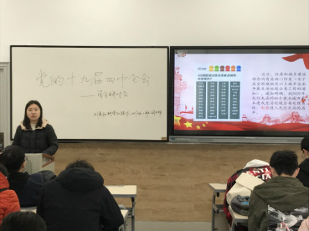 12月2日,信息学院2017级计算机2班在25栋110室举办“党的十九届四中全会学习研讨会”。会议深入学习了十九届四中全会精神,17级计算机2班全体成员参与本次研讨,团支书吴迎担任主讲人。