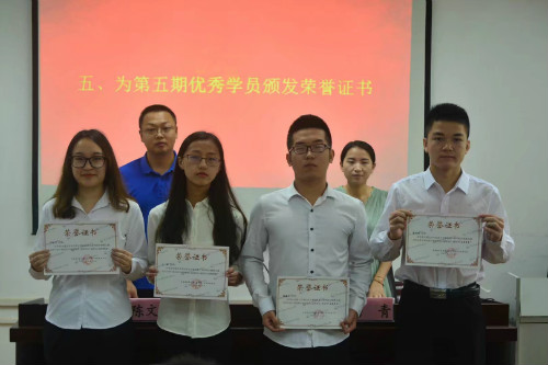 为了表彰先进,促进世纪英才学员马克思主义精神的养成。世纪英才学校信息学院分校第五期学员结业暨第六期学员开班典礼在教4栋307室举行。信息学院学工办主任兼团委书记陈文锦,学工办副主任兼团委副书记杨青出席典礼。第五期和第六期全体学员参加此次典礼。