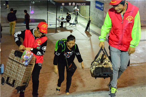 “你的行李这么多,让我来帮你提行李吧”,“从这个路口右转,就是公交车站了”。在南昌站出口处,头戴小红帽,身穿红马甲的信息志愿者在人群中格外醒目,他们有的为老幼病残、行动不便的旅客提行李物品,有的为初来乍到、人事不熟者热情指路。志愿者们忙碌的身影俨然成为了火车站一道靓丽的风景线。