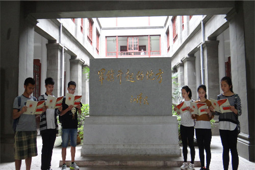 八一广场上的纪念碑笔直地矗立着,历经风雨的塔顶红旗依旧鲜艳,高高飘扬。八一纪念馆中,一块醒目的石碑赫然伫立,“军旗升起的地方”七个苍劲有力的大字跃然石上,这是江泽民总书记于建军70周年前夕所题写。面对石碑,党课学员们表情严肃,大声朗读手握的党章党规。这是军旗升起的地方,这也是党课学员们向祖国庄严承诺的地方。
