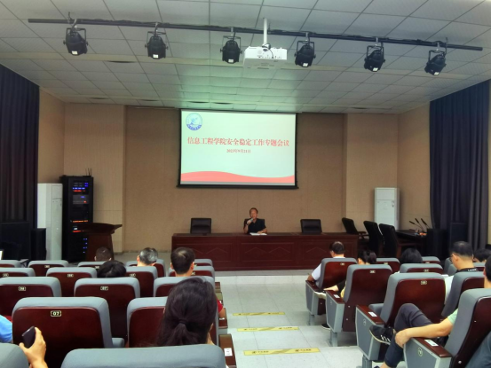 于教5栋108校友报告厅召开安全稳定工作专题会议,院党委书记何仲坚主讲,全体教职工参会。