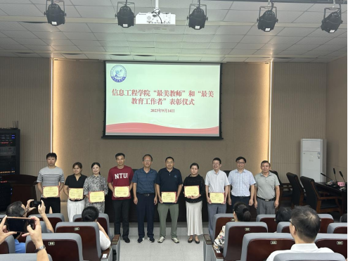 于教5栋108校友报告厅举行“最美教师”和“最美教育工作者”表彰仪式,院党委书记何仲坚、副院长罗晖、官雪辉等出席会议,全体教职工参加会议。