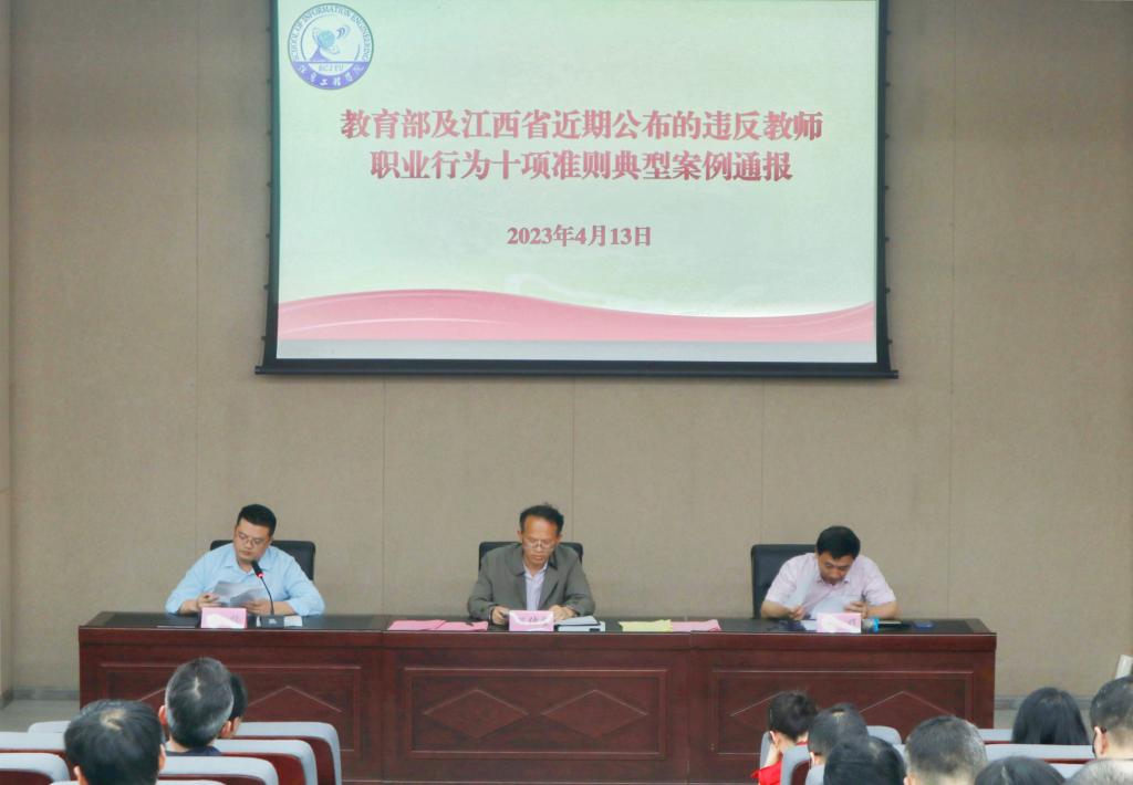 何仲坚组织学习了《新时代高校教师职业行为十项准则》,姜楠通报了教育部及江西省近期公布的违反教师职业行为十项准则典型案例并开展警示教育。罗晖组织学习了《华东交通大学教师师德失范行为负面清单及处理办法(试行)》等文件以及习近平总书记在中国人民大学考察时的讲话。会议最后,全体教职工签署了《师德师风承诺书》。