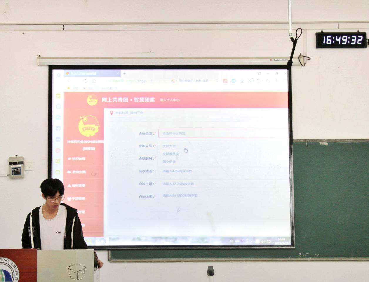 组织部杨子怡为各位团支书讲解并演示团支部工作手册的规范撰写和智慧团建系统操作方法。