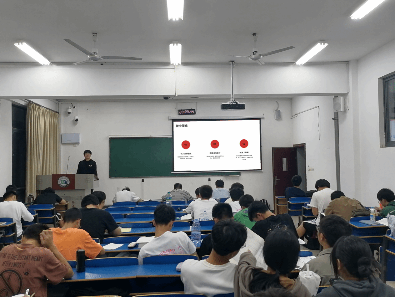 活动中,任强同志首先向同学们详细介绍考研考公与就业等信息,除此之外,介绍考研的重要性以及备考的方法与技巧。任强同志还详细解析选择研究方向、规划学习计划、应对复习压力的有效方式,本次活动旨在帮助同学们更全面地了解不同职业选择的优势和挑战,为未来的发展提供更明晰的方向。在互动环节,同学们积极提问,分享彼此的看法和经验。活动不仅为同学们提供了多维度的职业选择信息,也促使他们更清晰地认知自己的兴趣和发展方向。