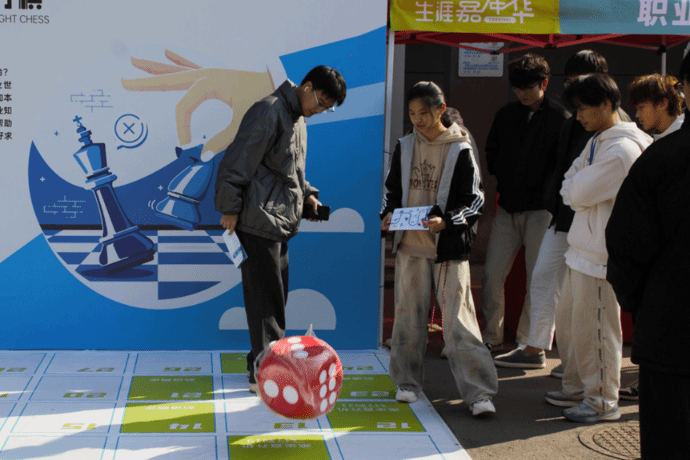 现场共设有“愿景指南针”“职业飞行棋”“急速60s”“专业大探秘”等十余个趣味关卡,覆盖了生涯唤醒、自我探索、职业认知、决策行动等全过程。